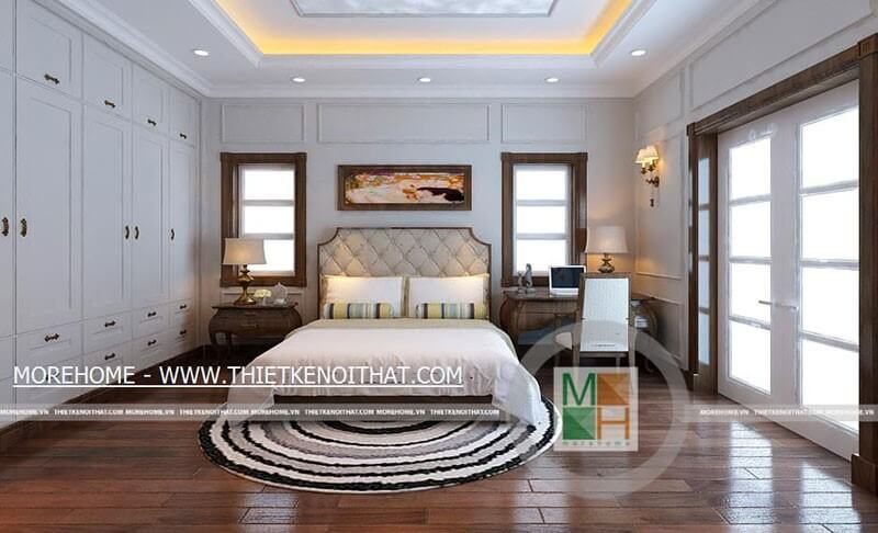 Mẫu giường ngủ bọc da dầu giường với đường cong tân cổ điển tinh tế tạo không gian thoải mái sang trọng cho phòng ngủ