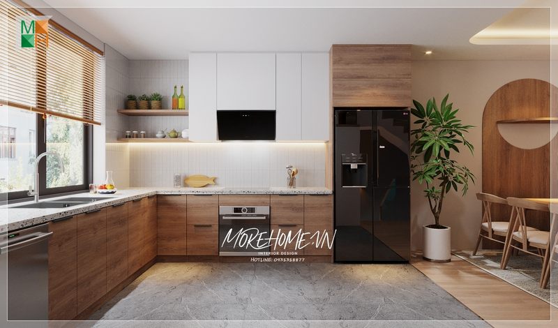 Phòng bếp nên được thiết kế riêng biệt với các không gian khác để có thể thông thoáng và giảm ám mùi đồ ăn trong không gian bếp.